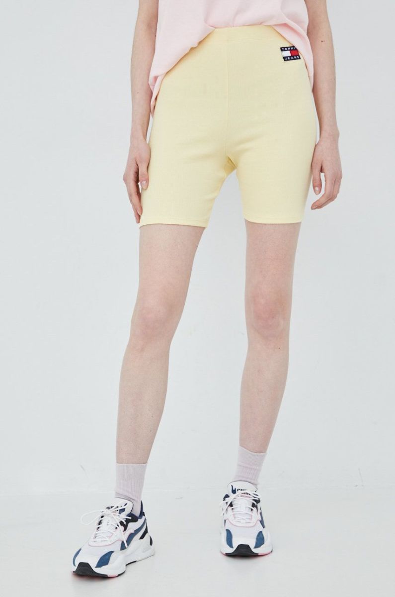 Шорти Tommy Jeans жіночі колір жовтий однотонні висока посадка
