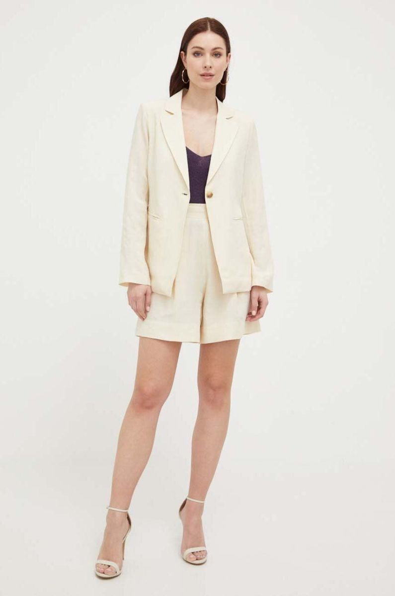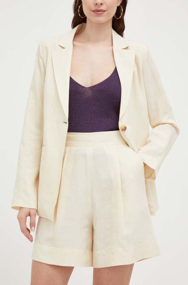 Шорти з домішкою льону Liu Jo колір бежевий однотонні висока посадка