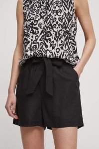Шорти з домішкою льону Medicine жіночі колір чорний однотонні середня посадка