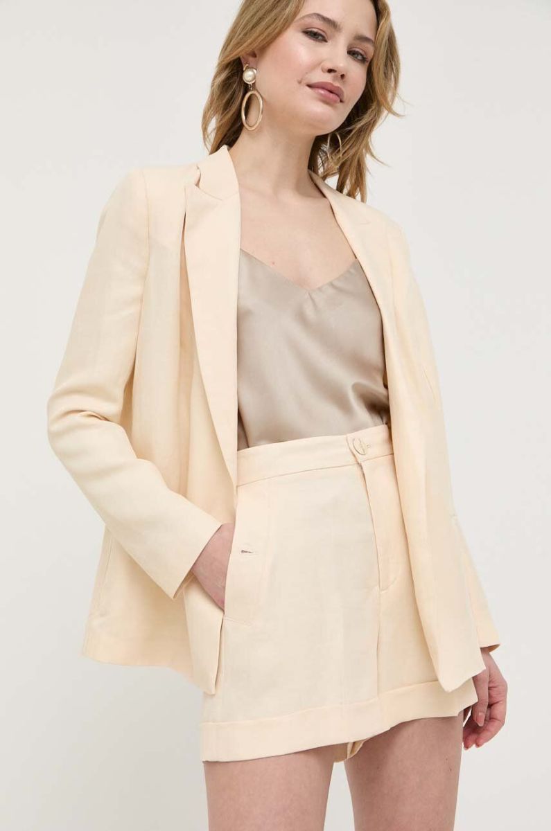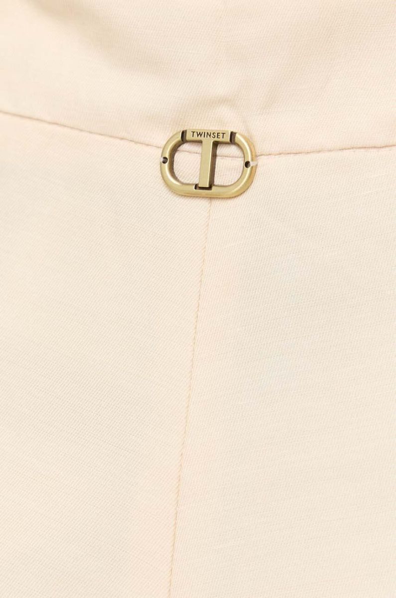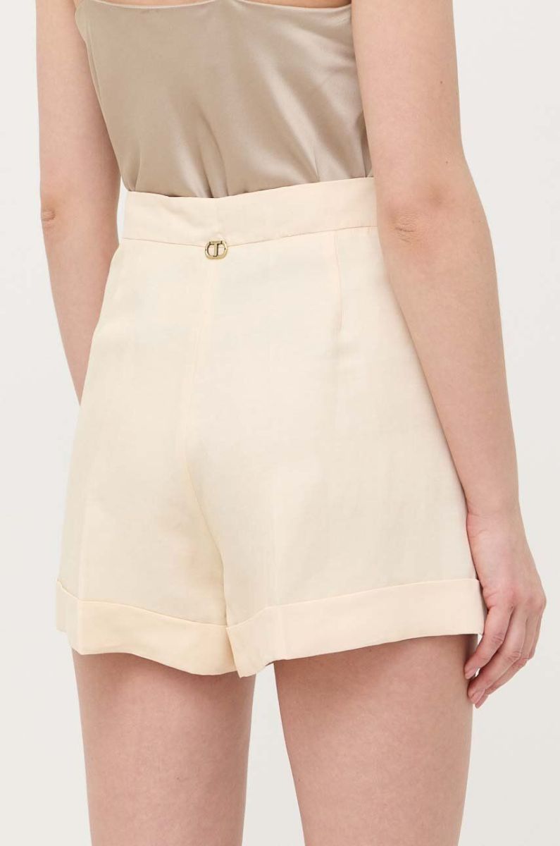 Шорти з домішкою льону Twinset колір бежевий однотонні висока посадка (3219243)