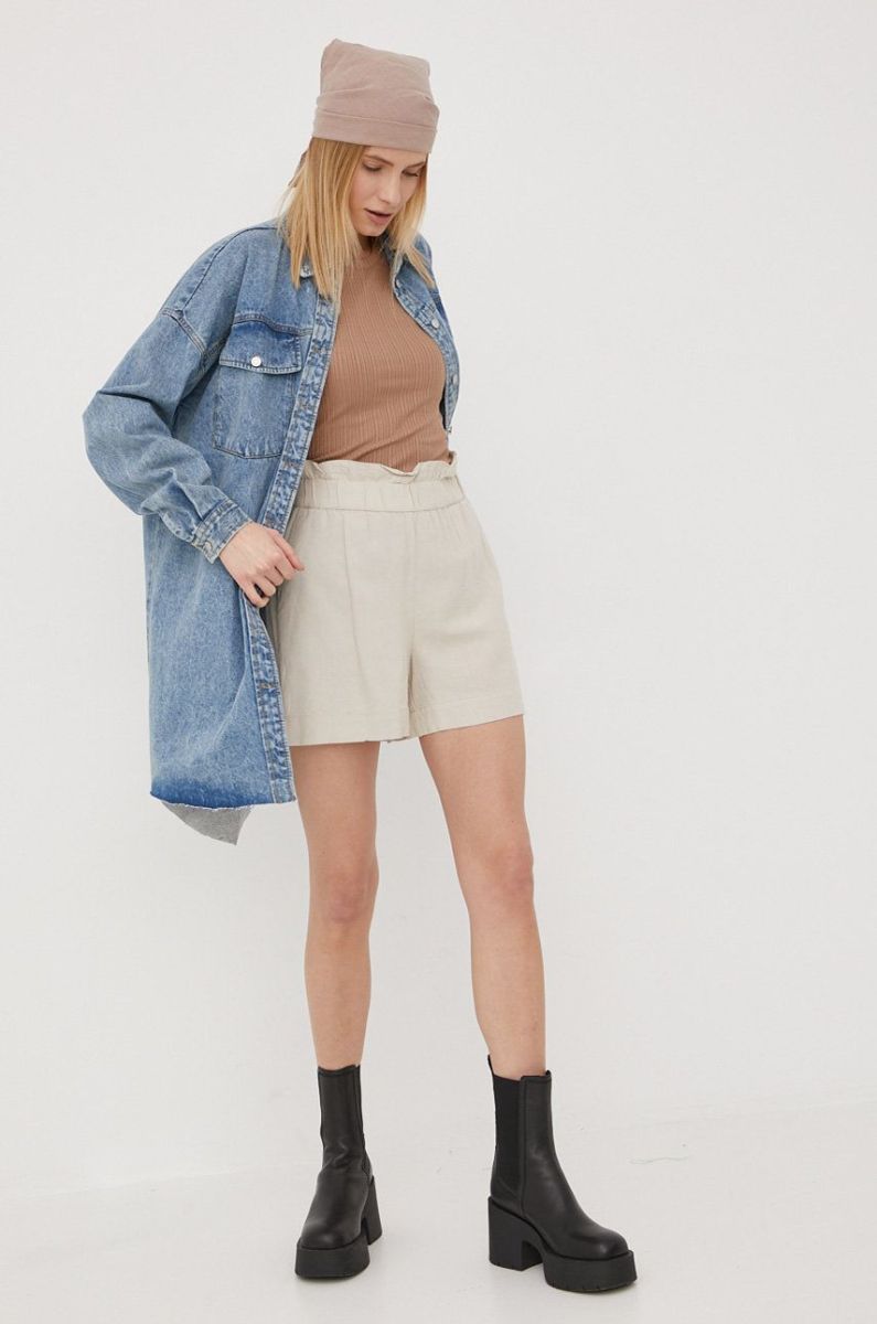 Шорти з домішкою льону Vero Moda жіночі колір бежевий однотонні висока посадка (2269234)