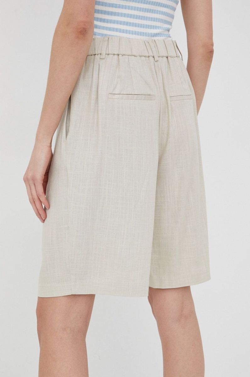 Шорти з домішкою льону Vero Moda жіночі колір бежевий однотонні висока посадка (2281186)