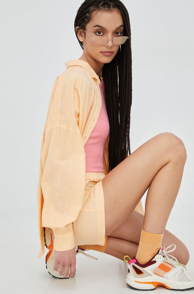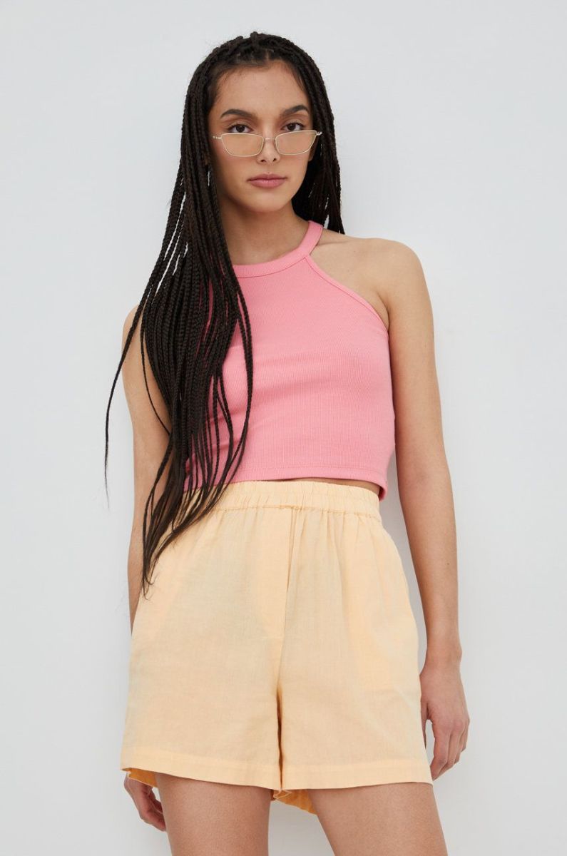 Шорти з домішкою льону Vila жіночі колір помаранчевий однотонні висока посадка