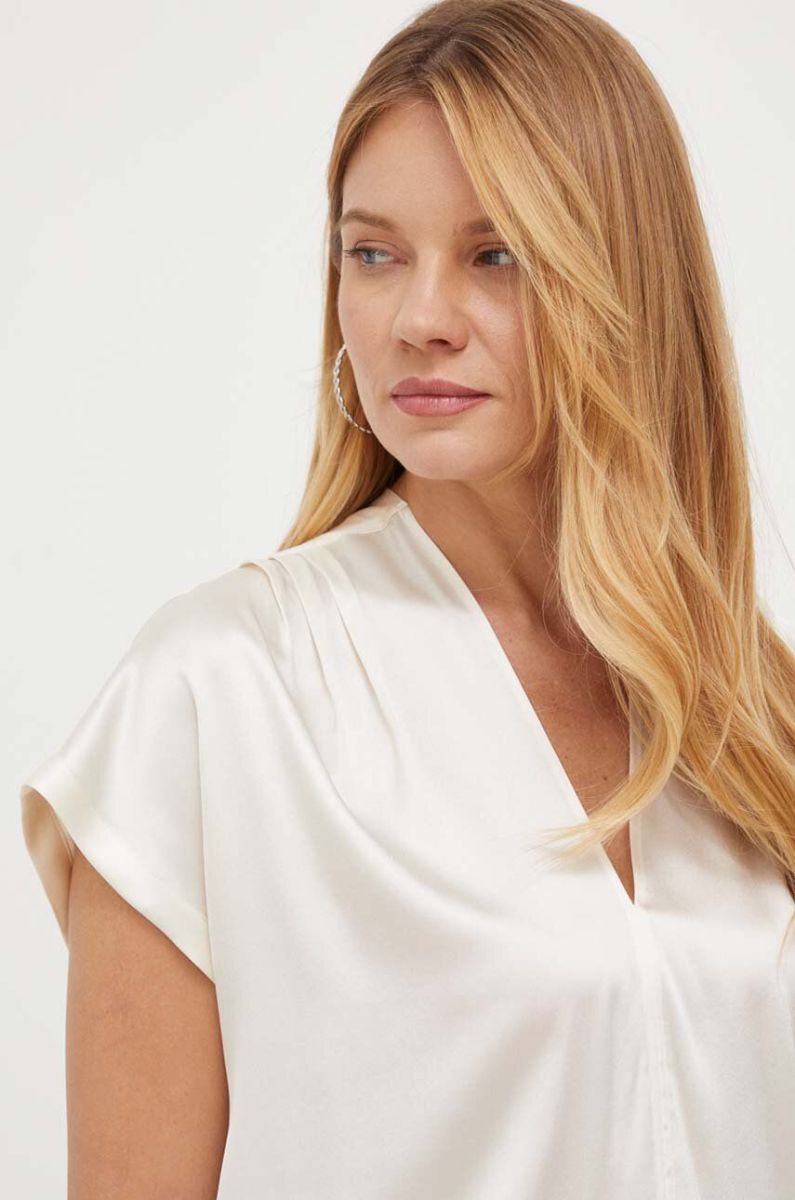 Шовкова блузка Pinko колір бежевий однотонна (3449824)