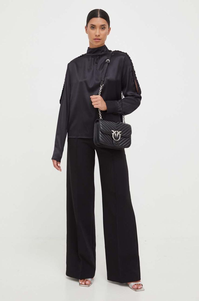 Шовкова блузка Pinko колір чорний однотонна (3526837)