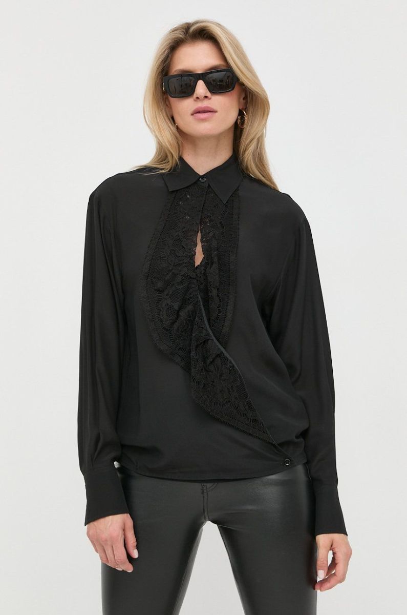 Шовкова сорочка Victoria Beckham жіноча колір чорний relaxed класичний комір