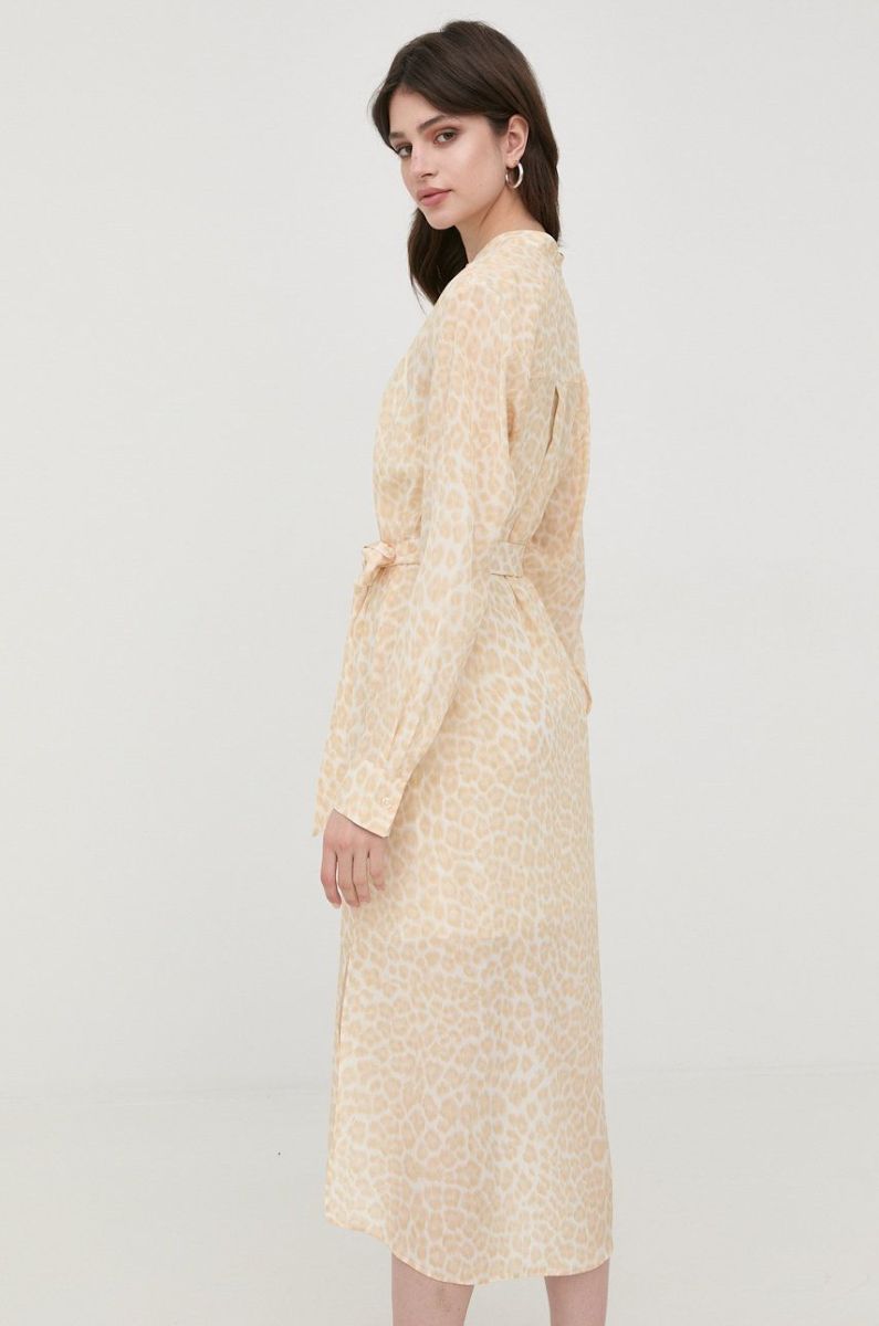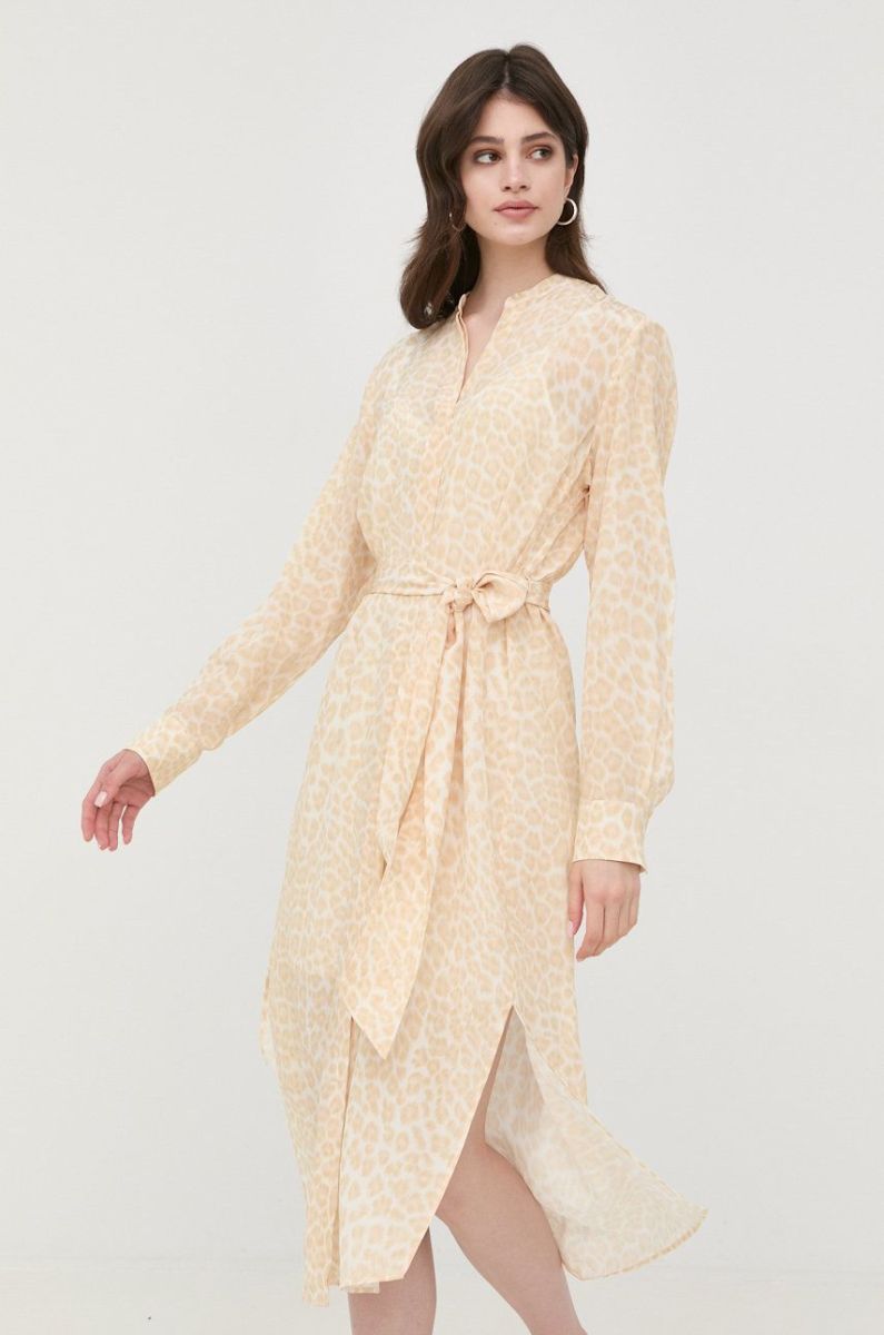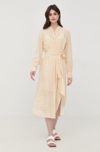 Шовкова сукня BOSS колір бежевий midi пряма