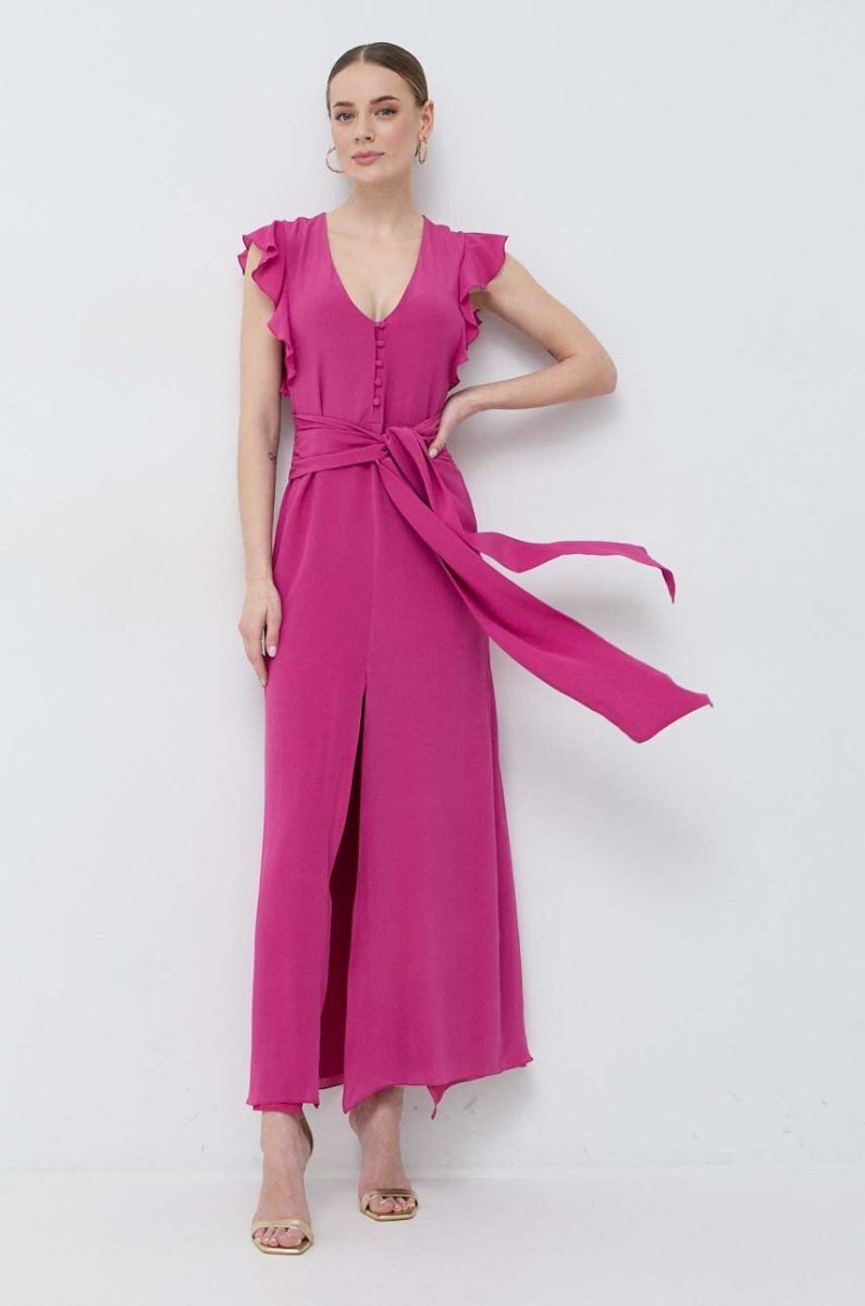 Шовкова сукня Patrizia Pepe колір рожевий maxi розкльошена (3106647)