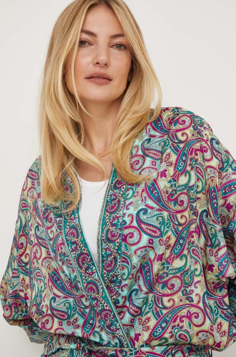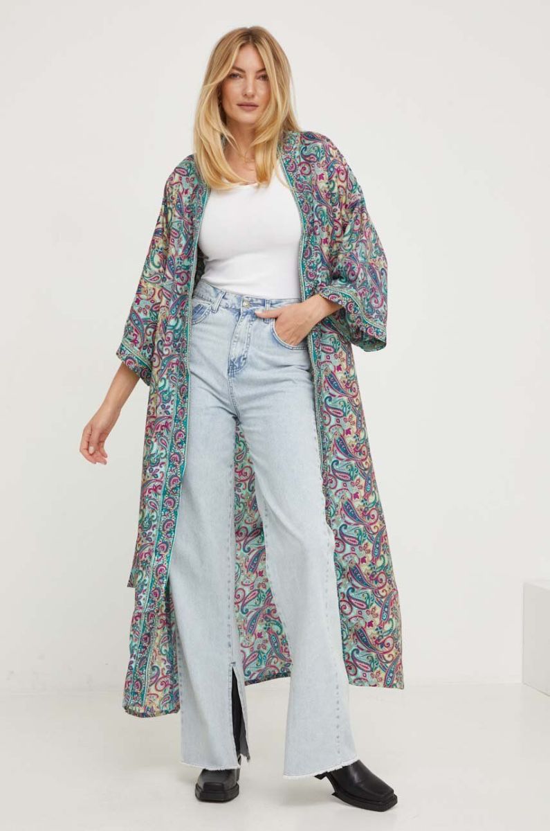 Шовкове кімоно Answear Lab колір зелений oversize візерунок