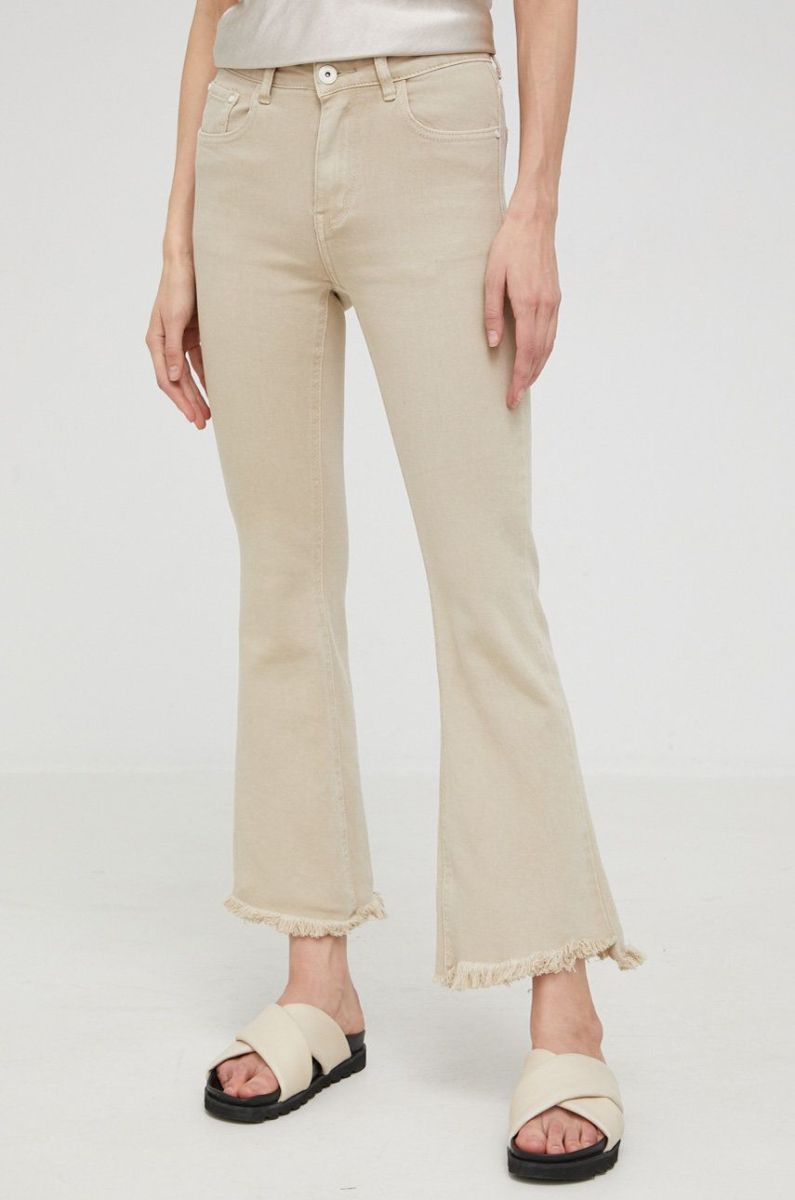Штани Answear Lab жіночі колір бежевий облягаюче середня посадка