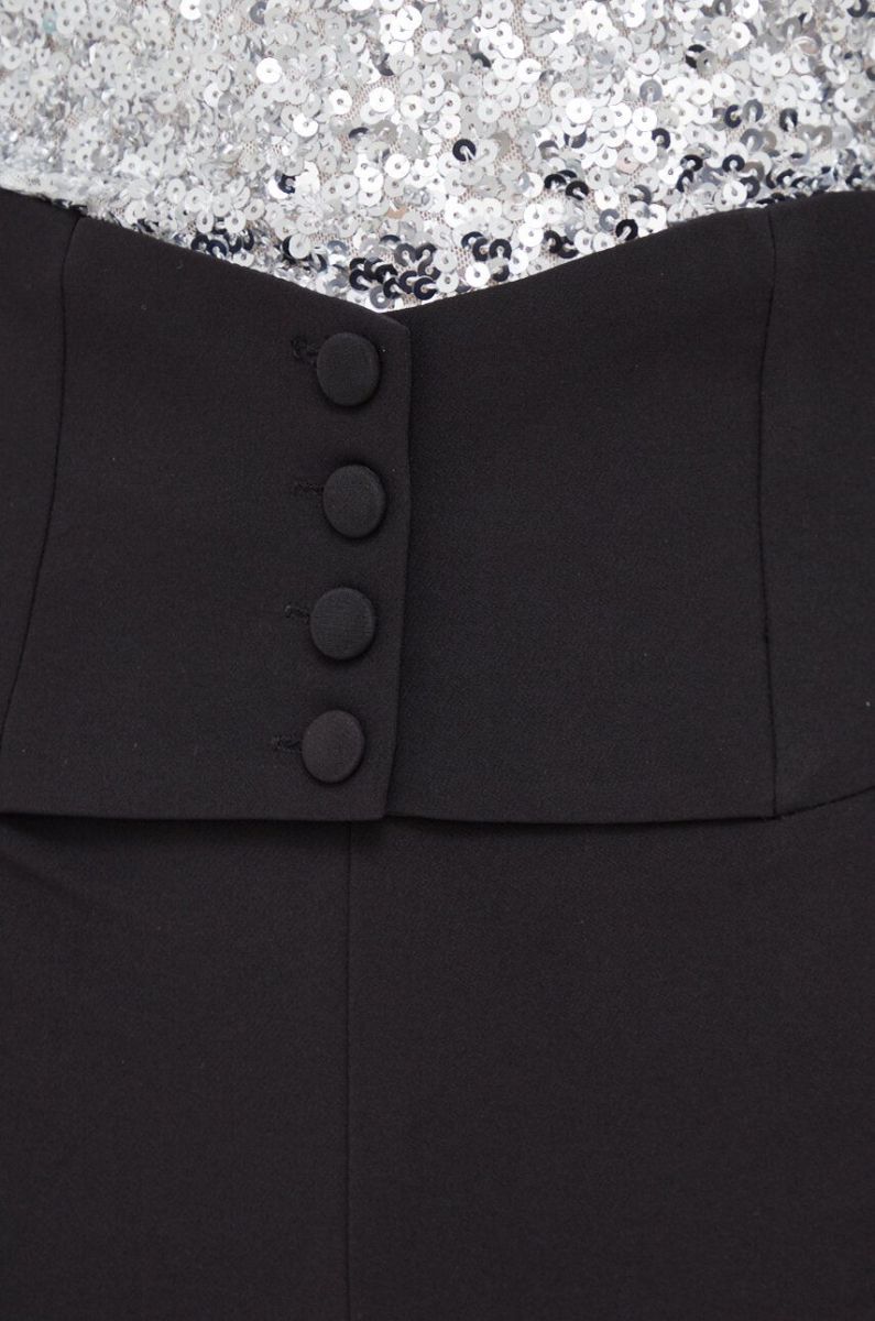 - Модель із завищеною талією та застібкою на ґудзики і блискавку.