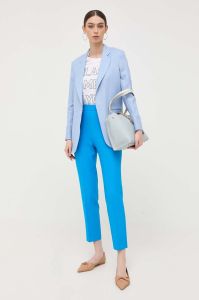 Штани BOSS жіночі фасон сигарети висока посадка колір блакитний (3296892)