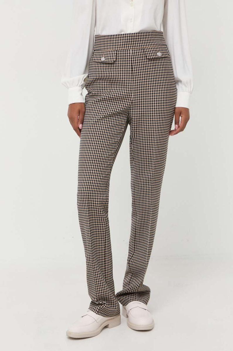 Штани BOSS жіночі колір бежевий пряме висока посадка (3547400)