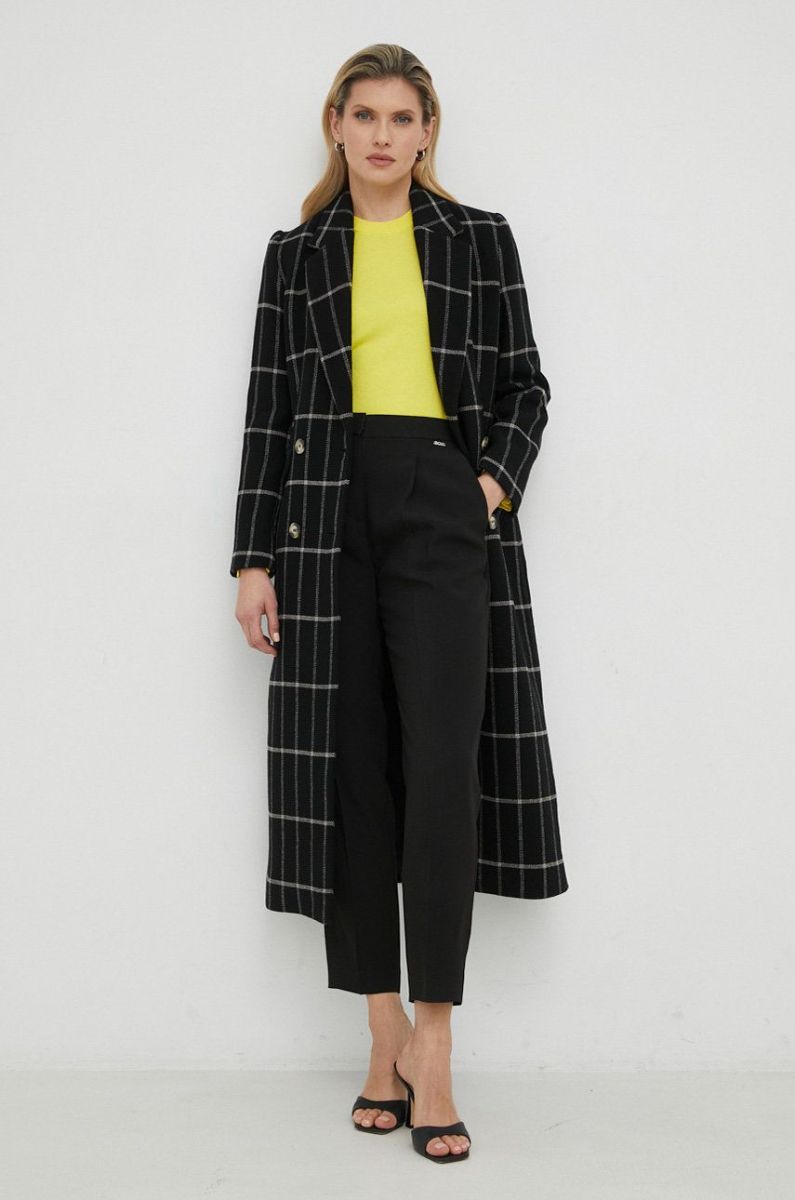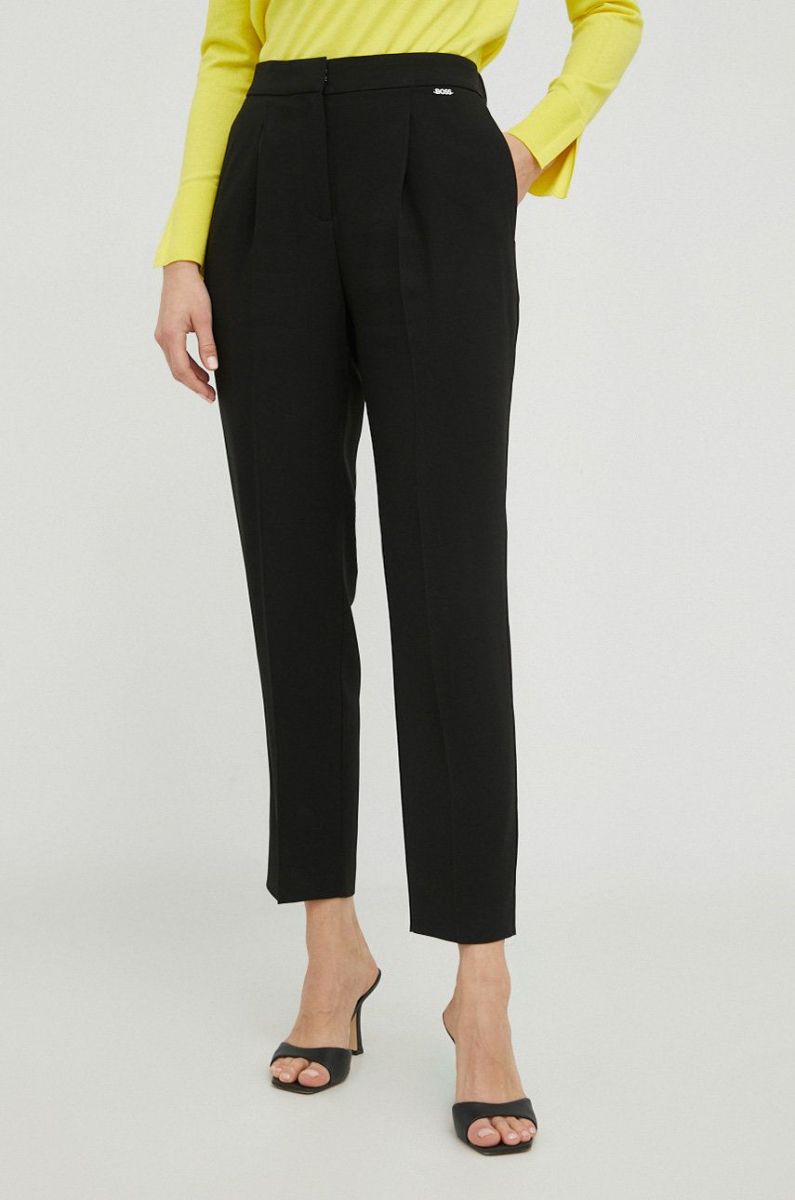 Штани BOSS жіночі колір чорний фасон сигарети висока посадка