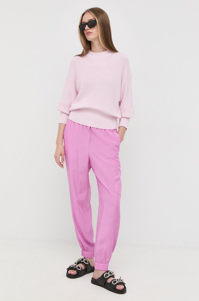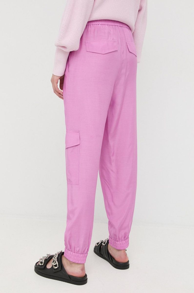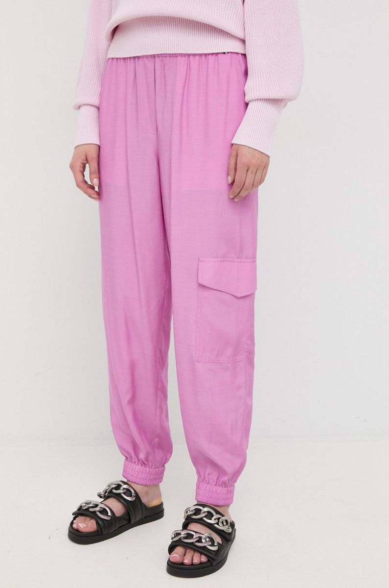 Штани BOSS жіночі колір фіолетовий фасон cargo висока посадка