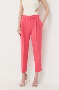 Штани BOSS жіночі колір рожевий пряме висока посадка