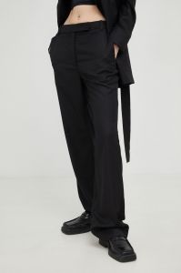 Штани Bruuns Bazaar жіночі колір чорний прямі висока посадка