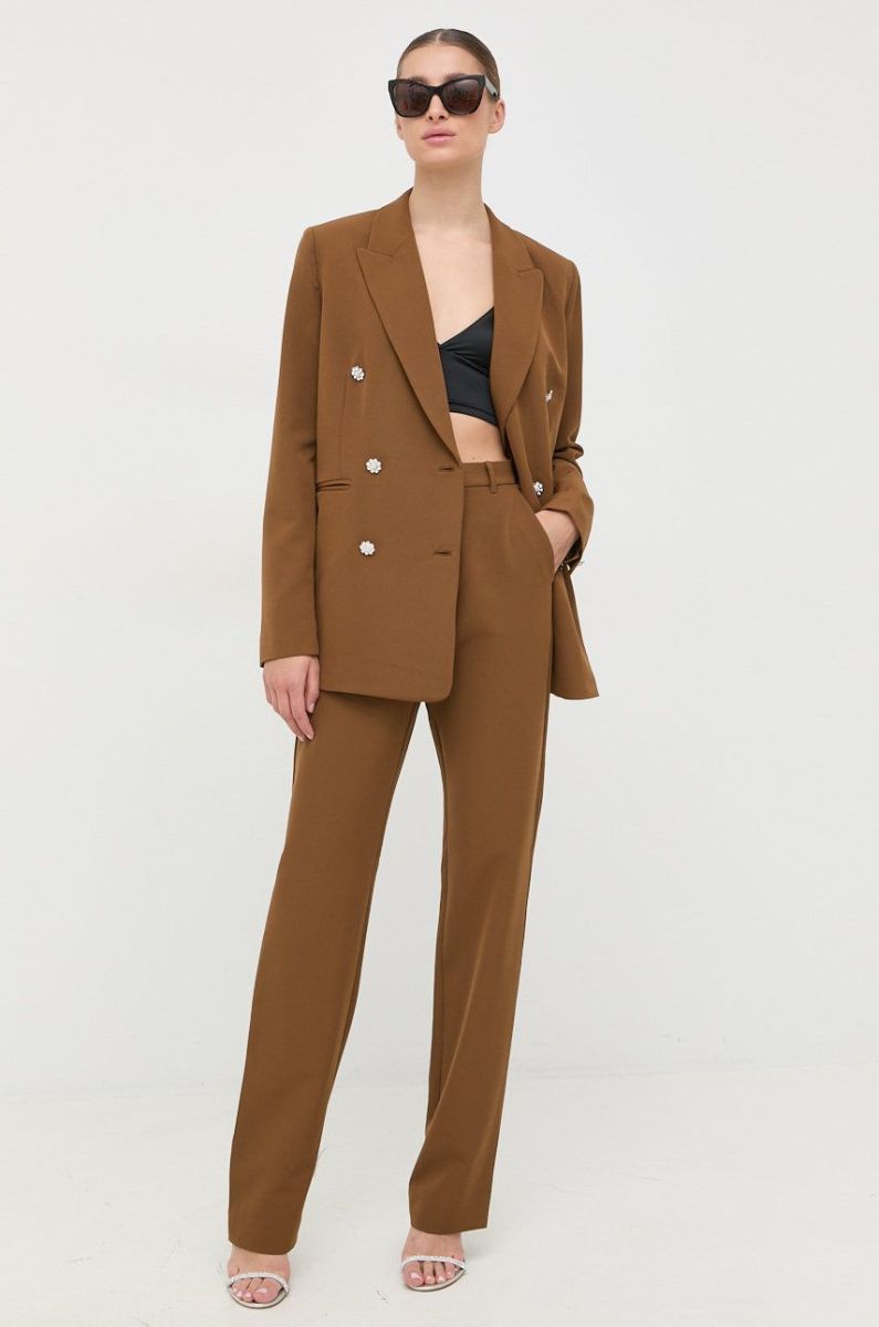 Штани Custommade жіночі колір коричневий пряме висока посадка (2484653)