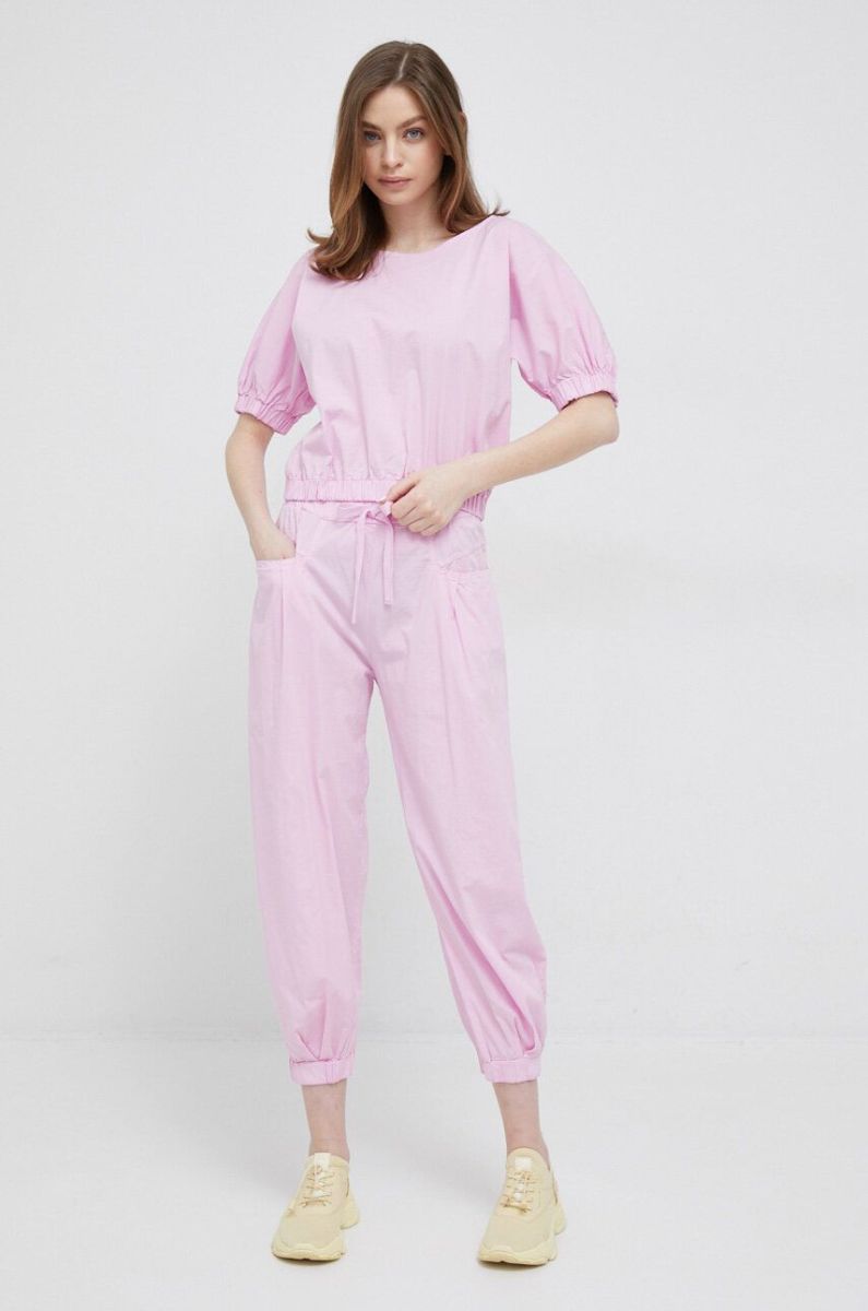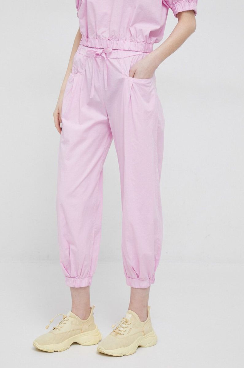 Штани Deha жіночі колір рожевий широке висока посадка