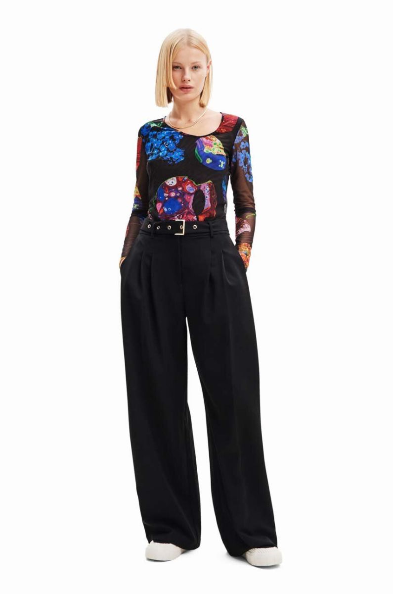 Штани Desigual 23WWPW24 WOMAN WOVEN LONG TROUSERS жіночі колір чорний широкі середня посадка