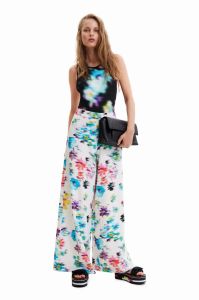 Штани Desigual жіночі колір білий широке висока посадка (3144843)