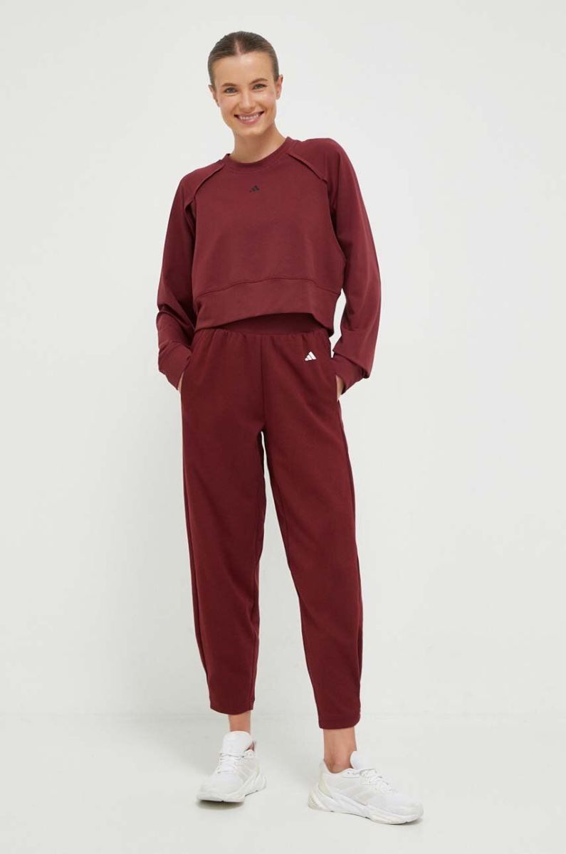 Штани для йоги adidas Performance Studio колір бордовий однотонні