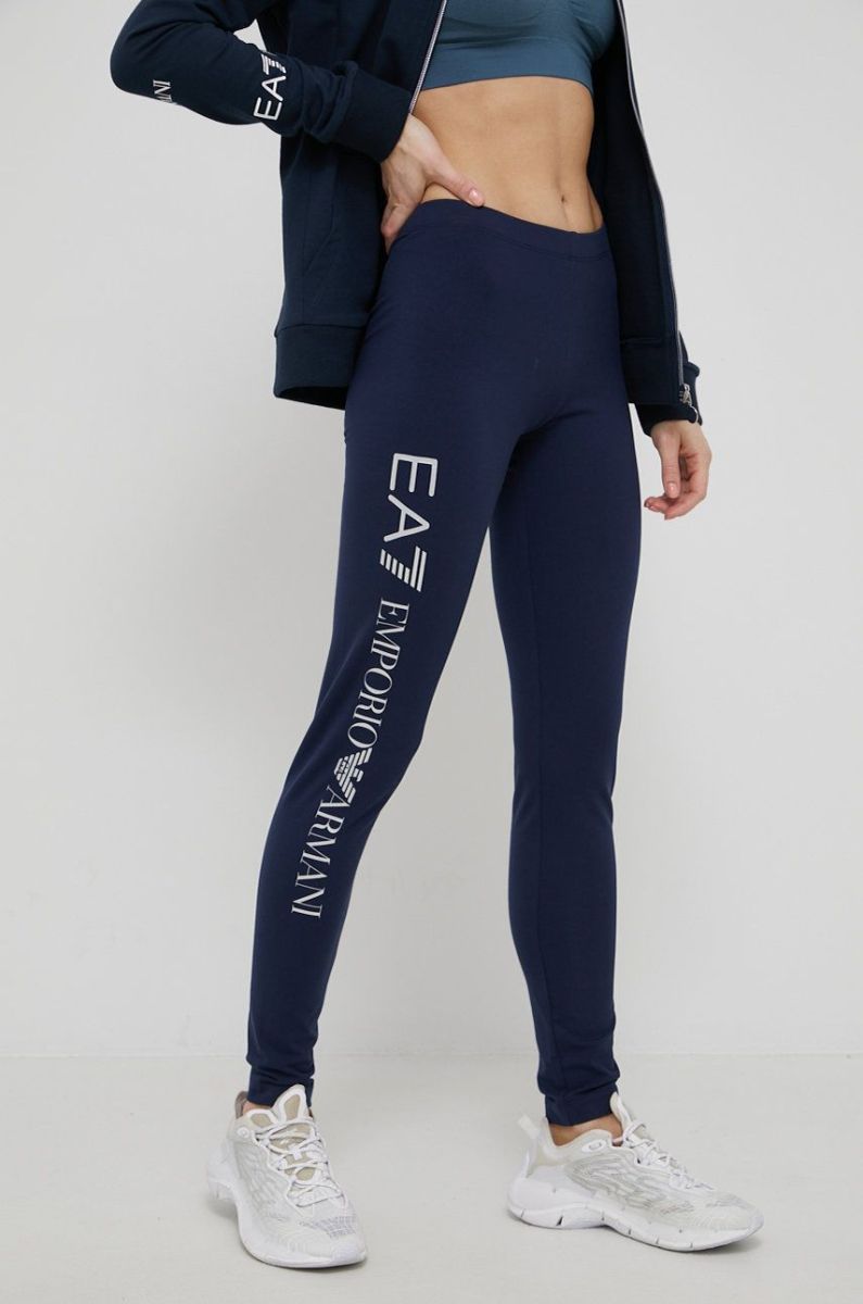Штани EA7 Emporio Armani жіночі колір синій з принтом