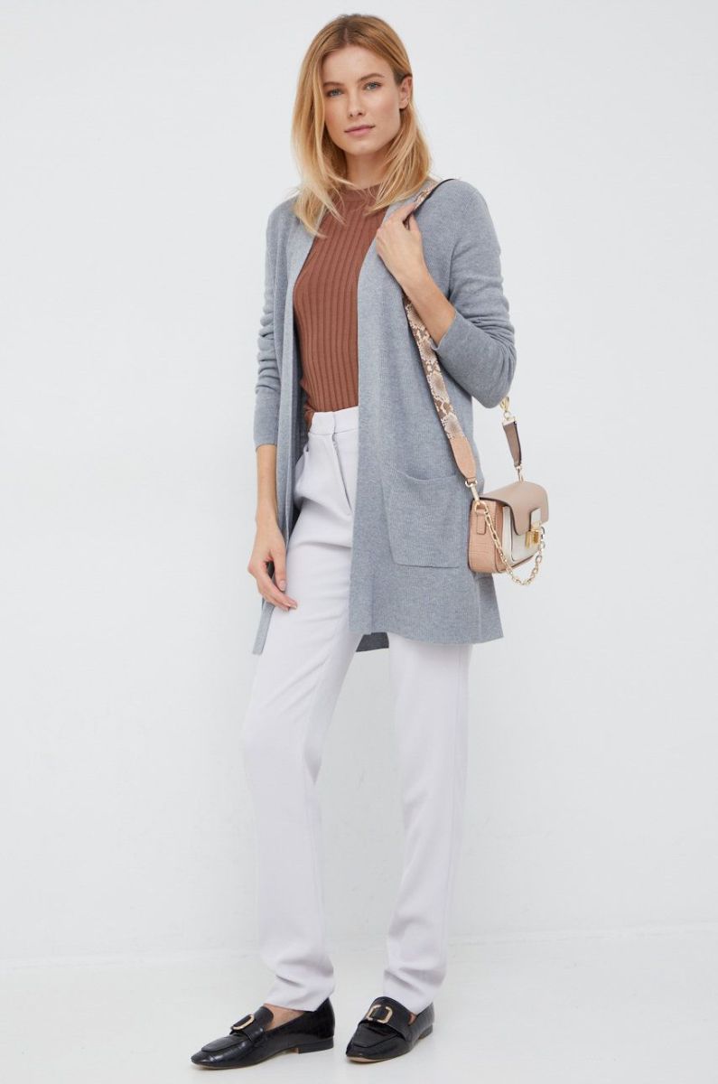 Штани Emporio Armani жіночі колір сірий пряме висока посадка