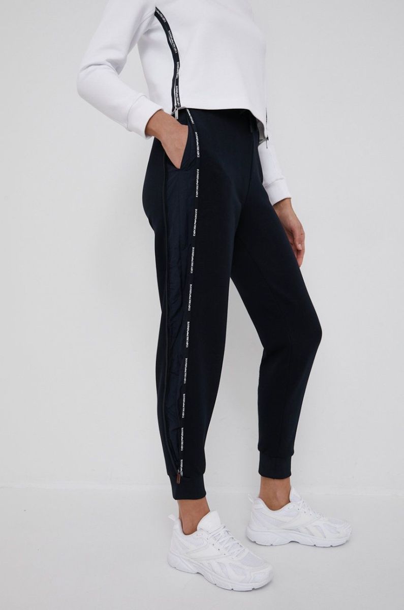 Штани Emporio Armani жіночі колір синій фасон jogger висока посадка