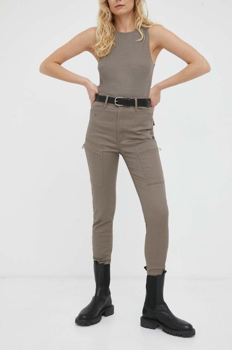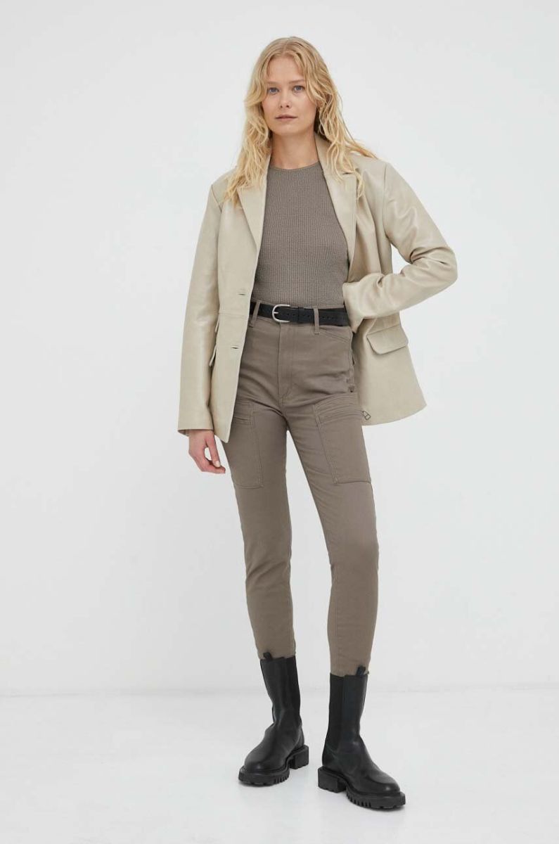 Штани G-Star Raw жіночі колір коричневий облягаюче висока посадка (3285284)