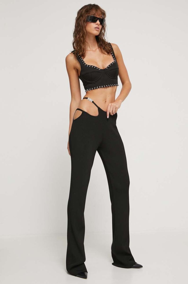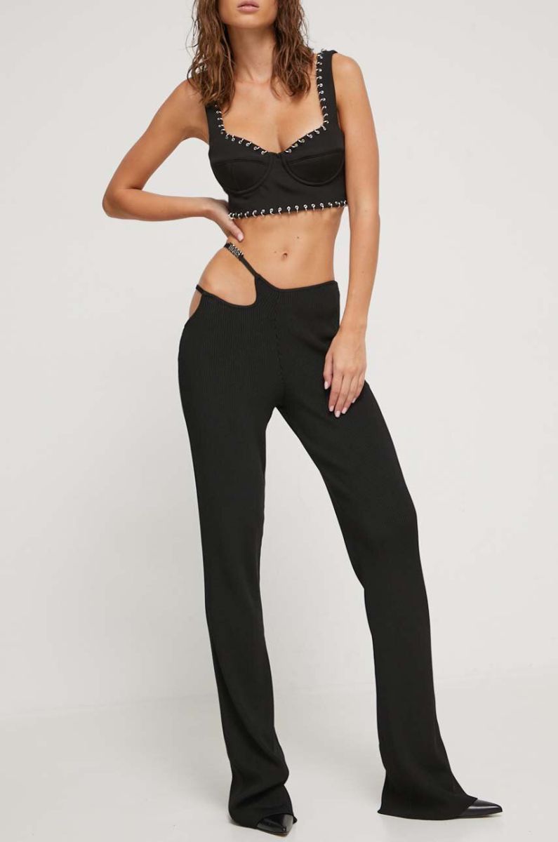 Штани GCDS жіночі колір чорний пряме висока посадка
