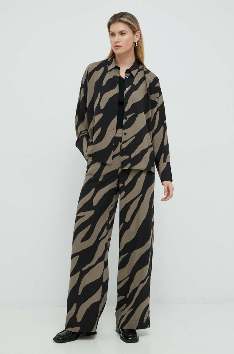 Штани Gestuz жіночі колір чорний широке висока посадка (2980161)