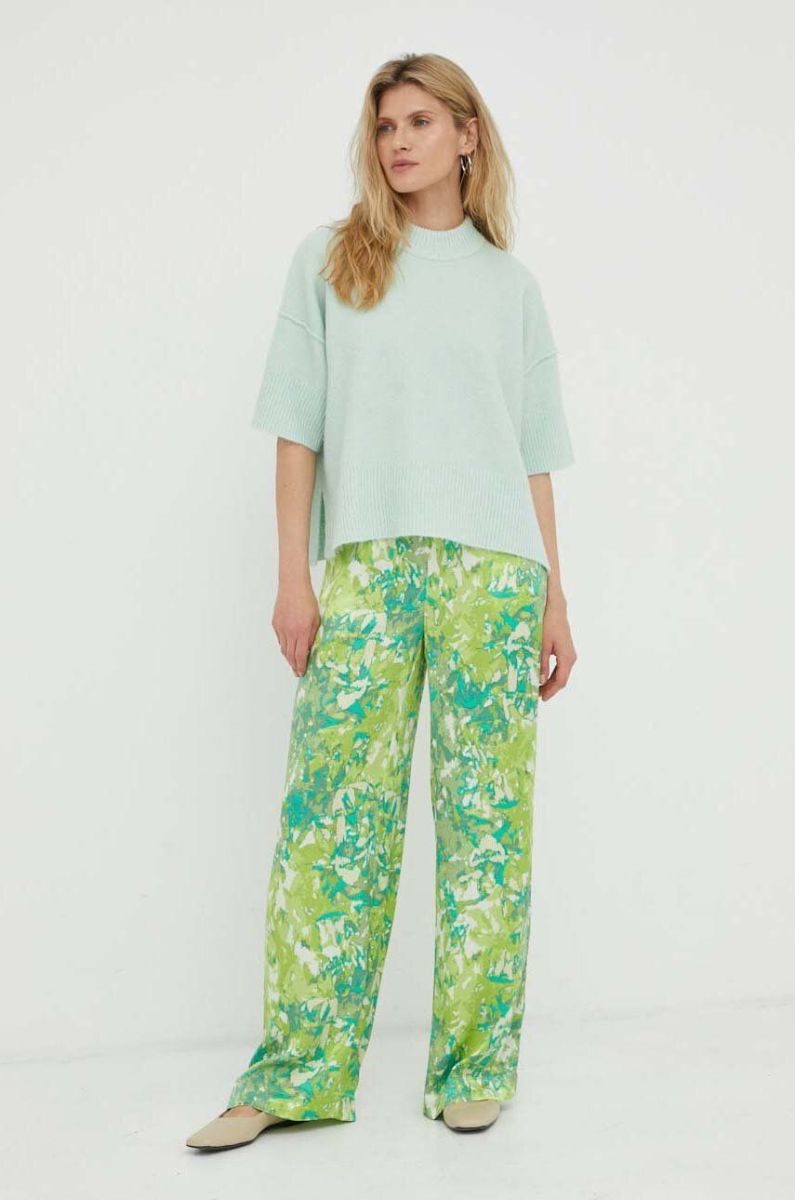 Штани Gestuz жіночі колір зелений широке висока посадка (3314160)