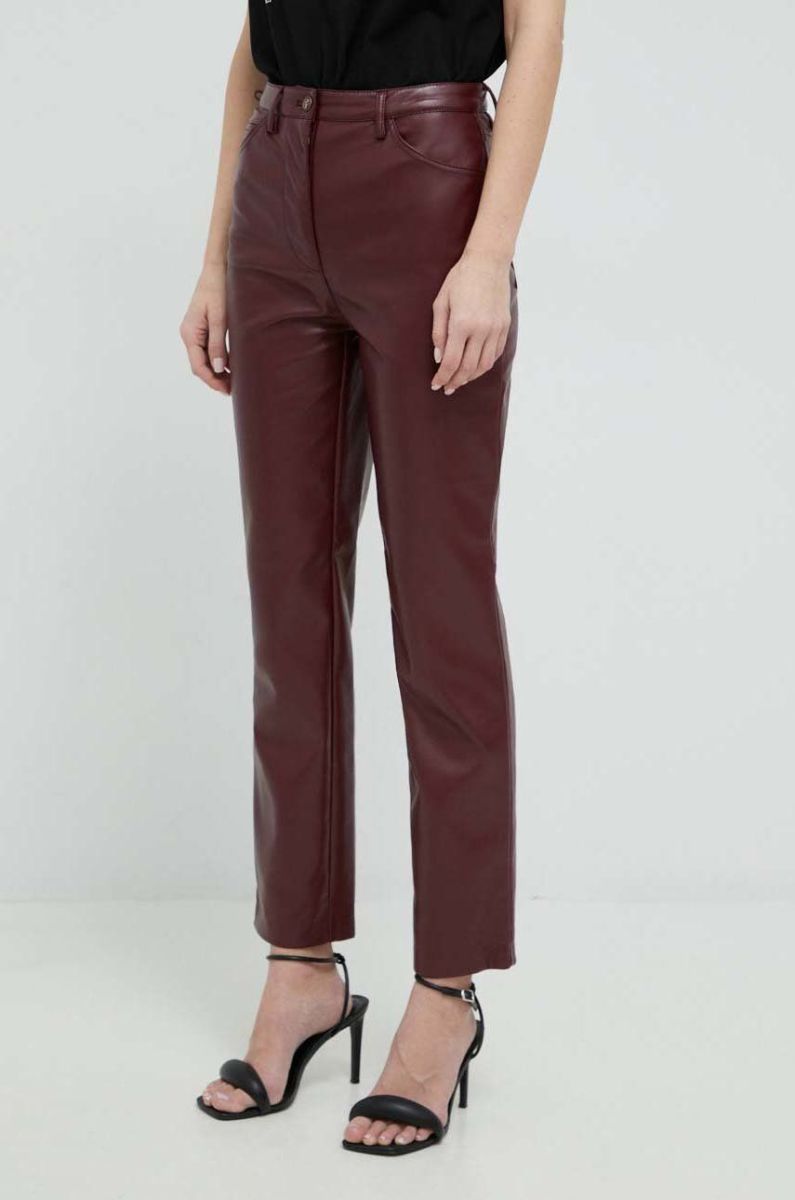 Штани Guess жіночі колір бордовий пряме висока посадка
