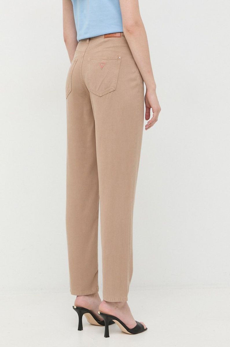 Штани Guess жіночі колір коричневий пряме висока посадка (2411676)
