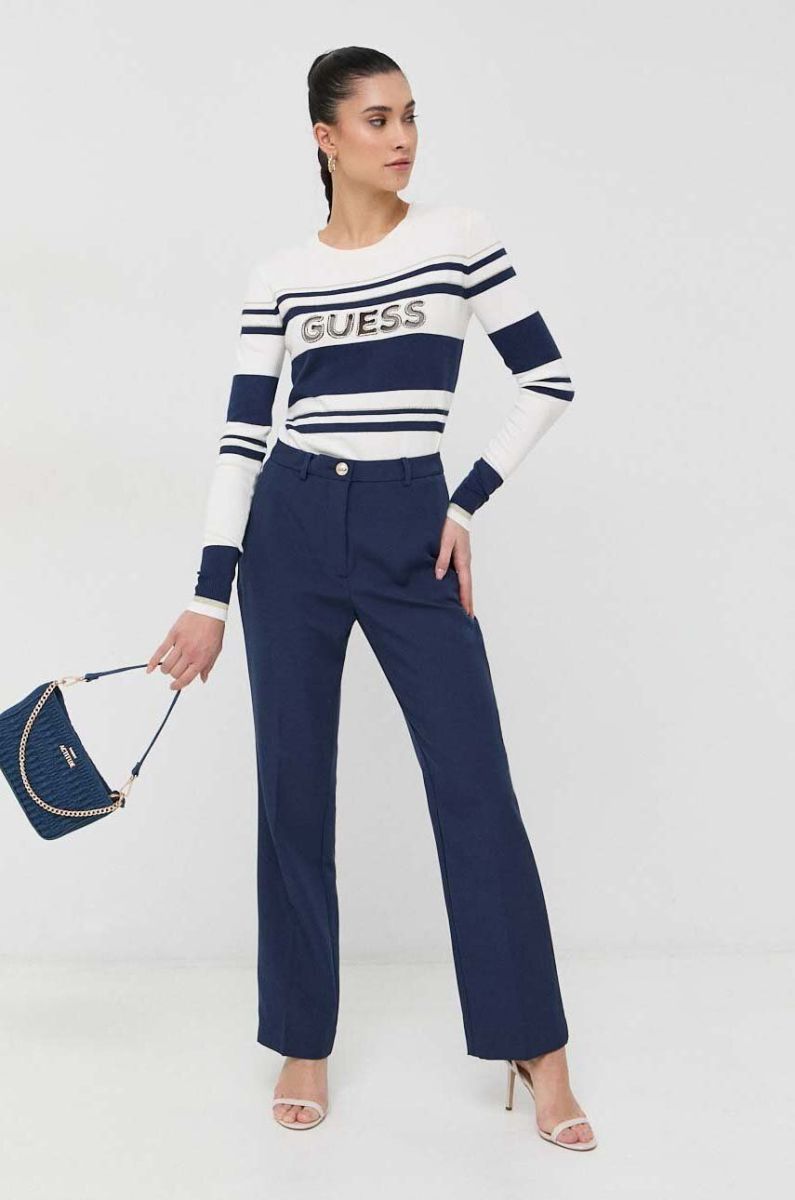 Штани Guess жіночі колір синій широке висока посадка (3019918)