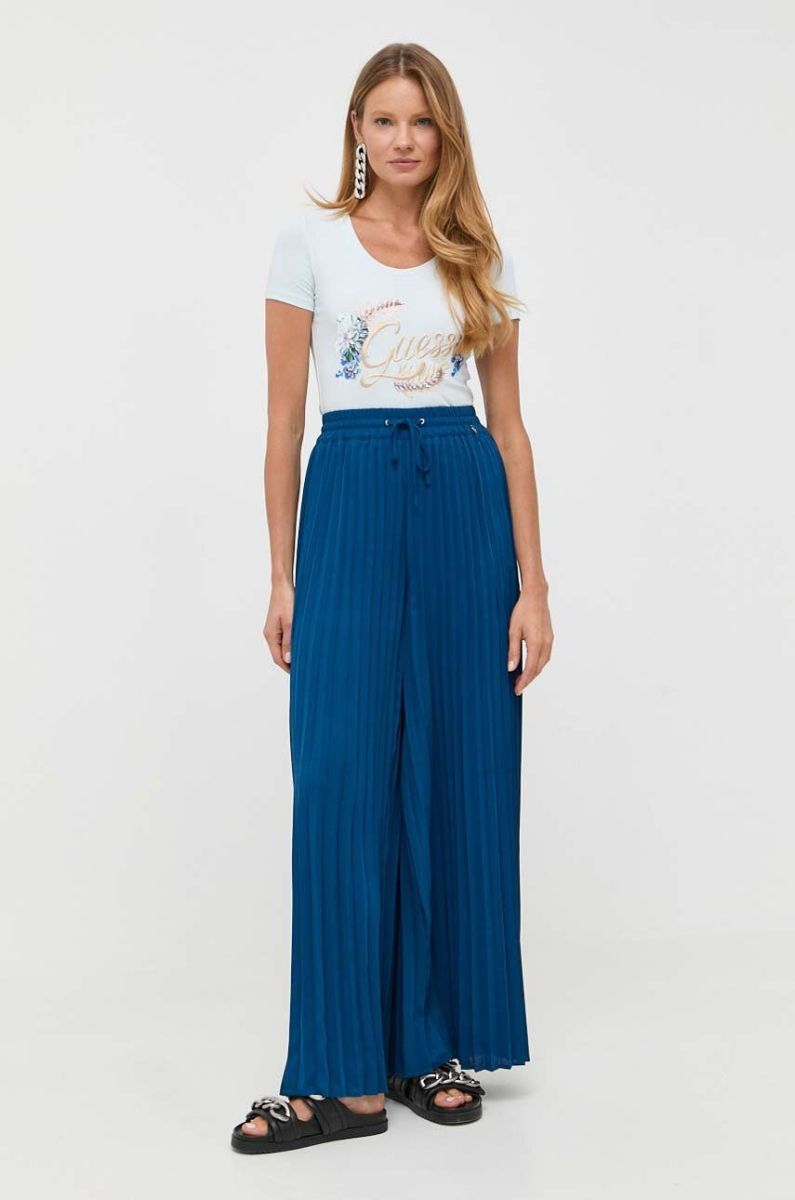 Штани Guess жіночі колір синій широке висока посадка (3230212)