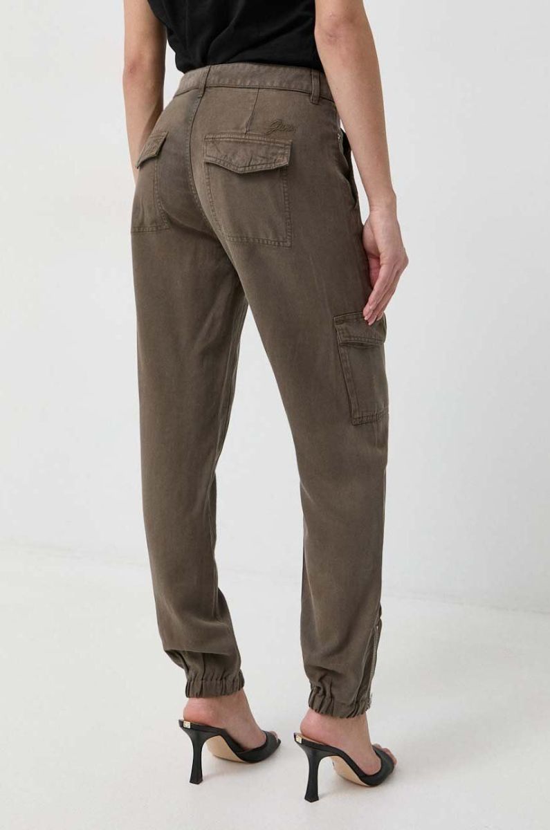 Штани Guess жіночі колір зелений фасон cargo висока посадка (3009156)