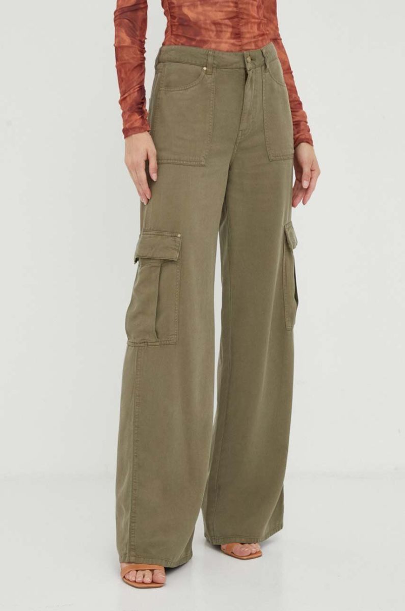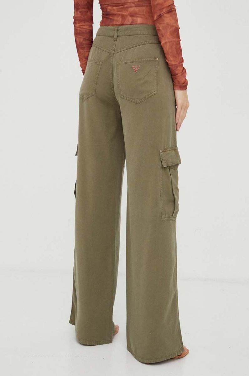 Штани Guess жіночі колір зелений пряме висока посадка (3454702)