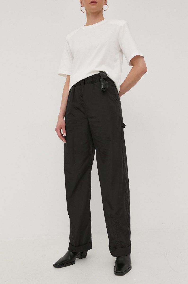 Штани Herskind жіночі колір чорний широке висока посадка (2442885)