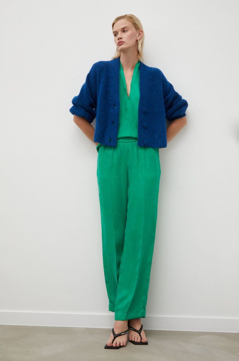 Штани Herskind жіночі колір зелений широкі висока посадка