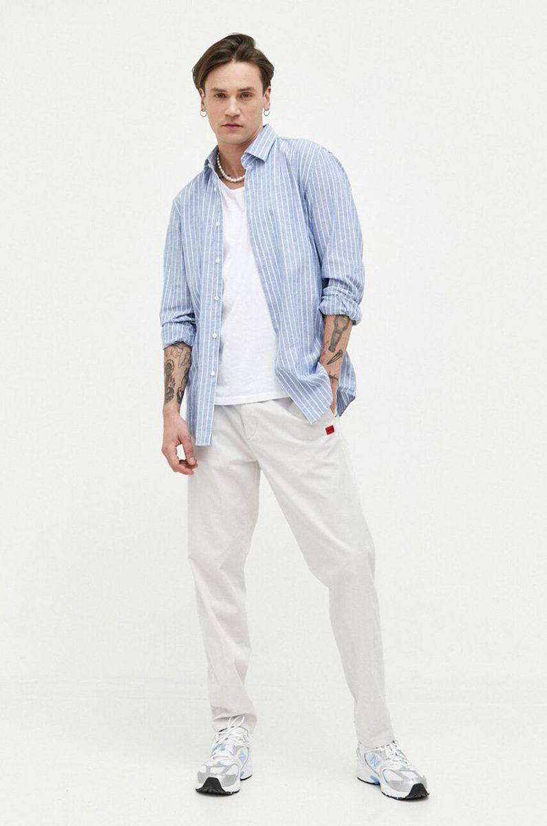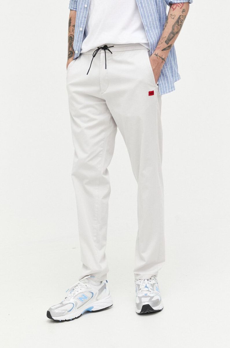 Штани HUGO чоловічі колір сірий облягаюче (3211977)