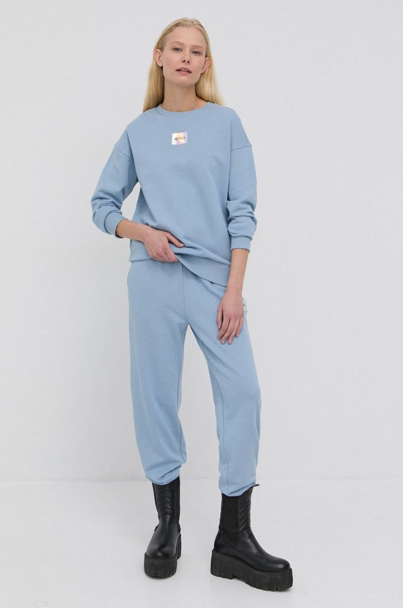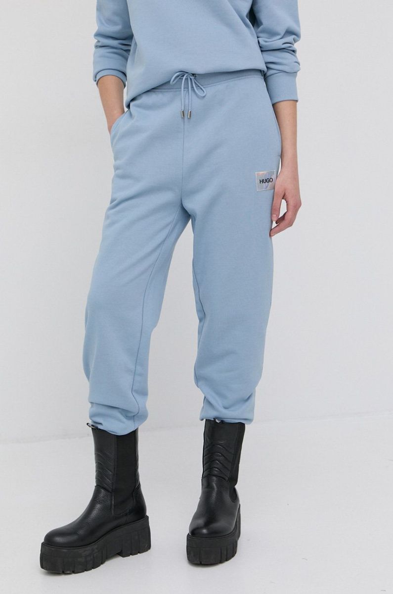Штани Hugo жіночі гладкі колір блакитний