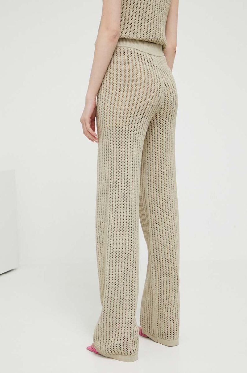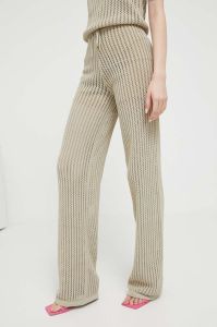 Штани Hugo жіночі колір бежевий пряме висока посадка