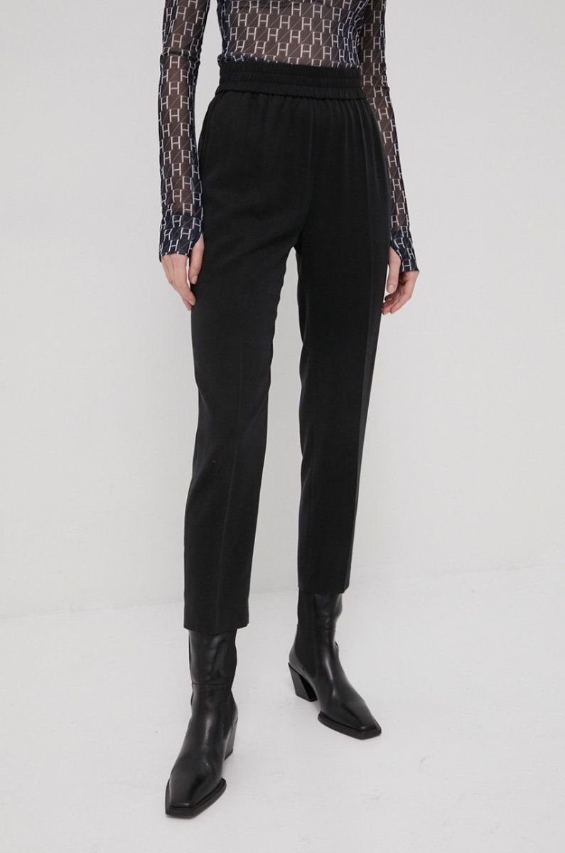 Штани Hugo жіночі колір чорний пряме висока посадка