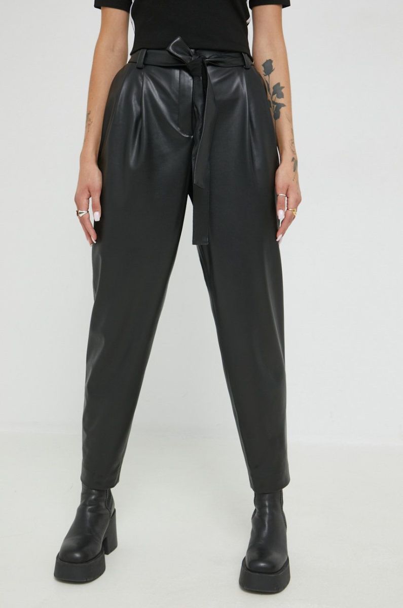 Штани HUGO жіночі колір чорний пряме висока посадка (2568303)