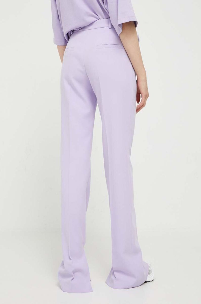 Штани HUGO жіночі колір фіолетовий пряме висока посадка