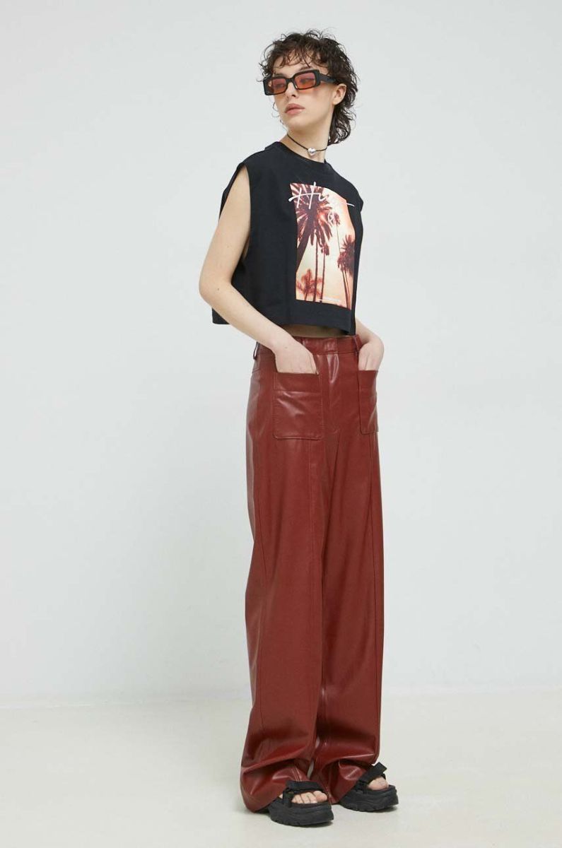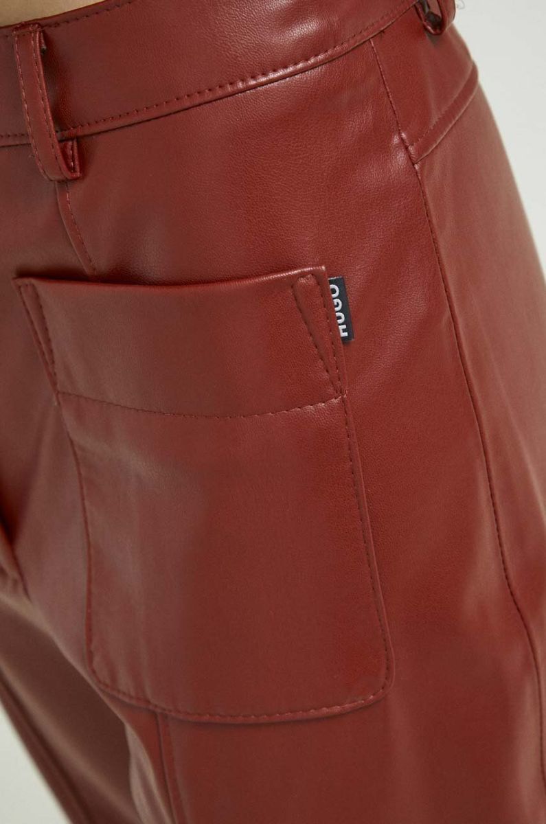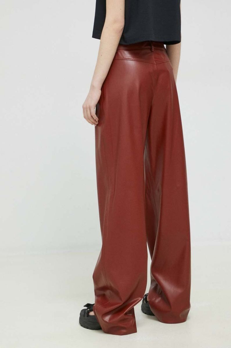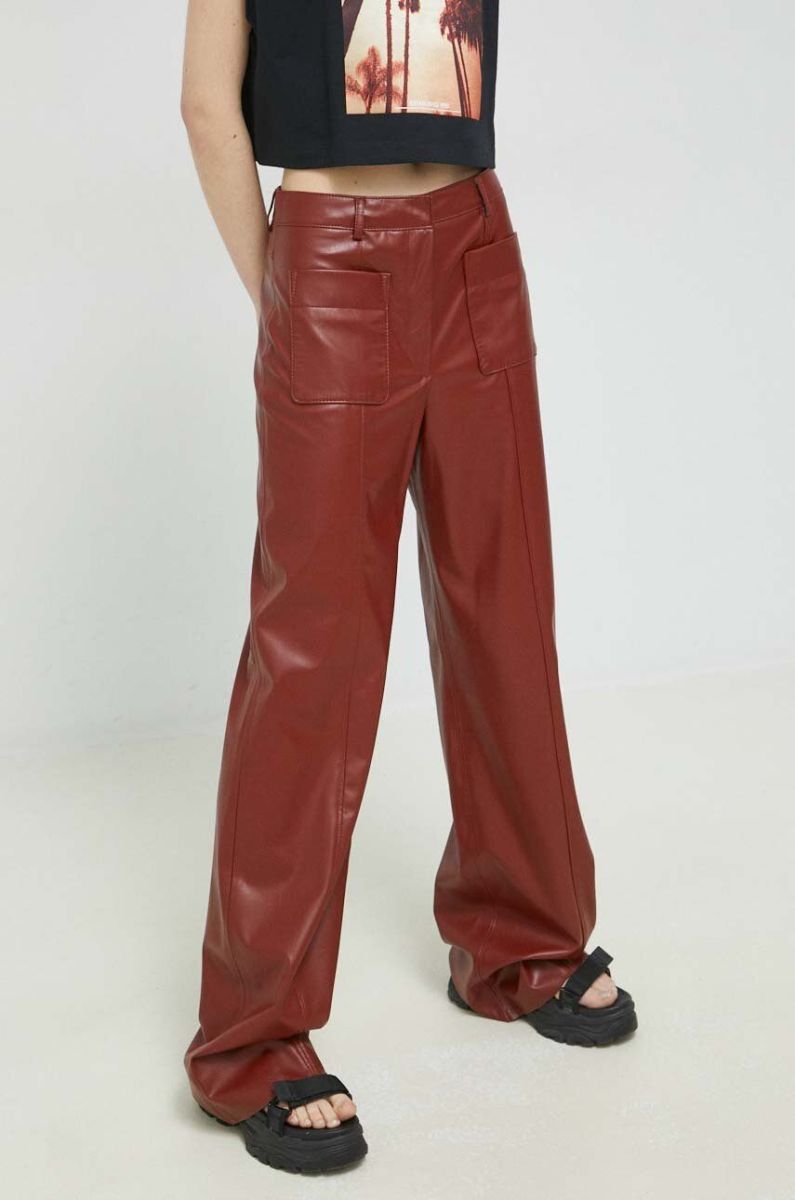 Штани HUGO жіночі колір коричневий широке висока посадка