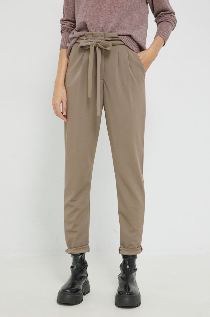 Штани JDY жіночі колір бежевий пряме висока посадка
