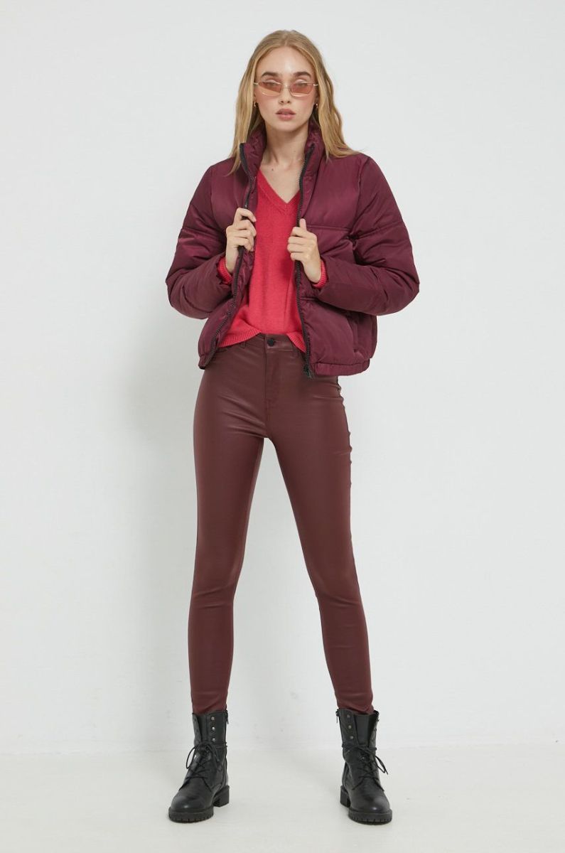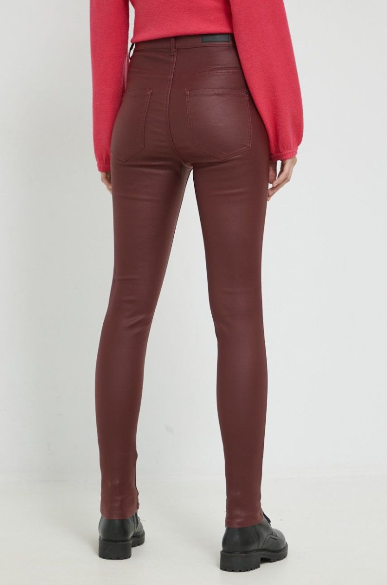 Штани JDY жіночі колір бордовий облягаюче висока посадка